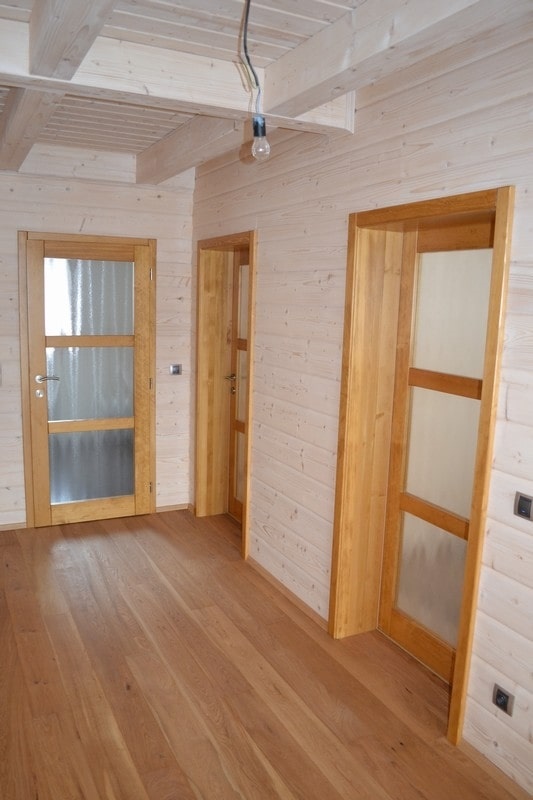 Dveře s obložkovou zárubní, masiv smrk, nástřik mořidlo + lak, sklo satin